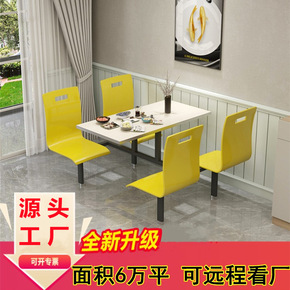 厂家批发中餐桌椅组合小吃快餐店饭店员工餐厅饭堂连体食堂餐桌椅