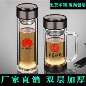 商务办公带把手柄保温高硼硅双层玻璃杯实用礼品茶杯logo印字