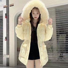 2022冬装新款韩版时尚白鸭绒羽绒服女短款加厚收腰显瘦真毛领外套