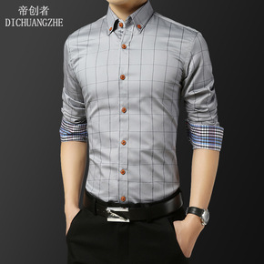 帝创者2020秋冬季新款韩版衬衫男式修身型格子衬衣男士长袖衬衫