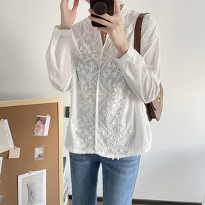 莉之绮 日韩休闲春秋女装批发V领刺绣花朵宽松长袖衬衫女303-1028