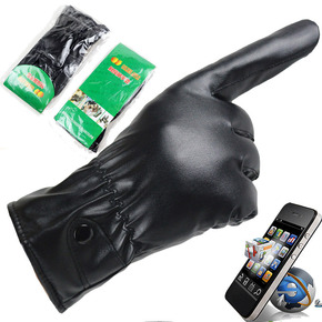 厂家直销男PU触屏皮手套冬季触屏女加绒仿皮抓绒骑行保暖手套批发
