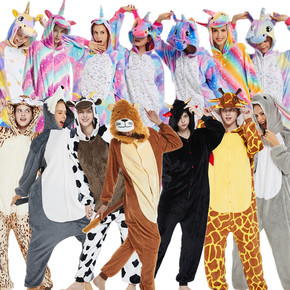 法兰绒动物卡通连体睡衣新款天马彩虹恐龙黑魔鬼男女家居服秋冬季