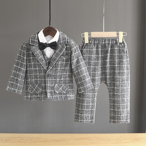 男童礼服秋冬新款格子西装套装宝宝花童婚礼主持演出服儿童小西服