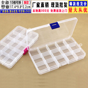 厂家货源 透明15格塑料盒 可拆零件盒渔具产品包装盒PP收纳盒批发