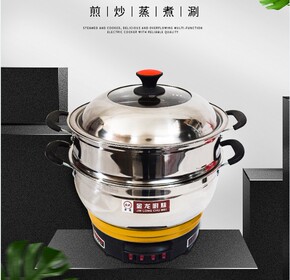 金龙厨妹28-40CM多功能不锈钢电热锅家用蒸煮两用锅加厚深炒菜电