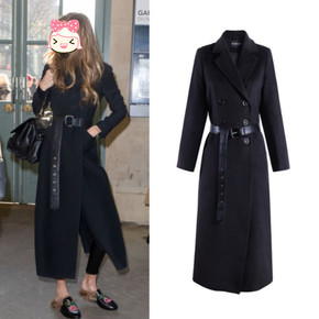 2022秋冬欧美毛呢外套明星同款黑色修身西装领长款妮子大衣女3662