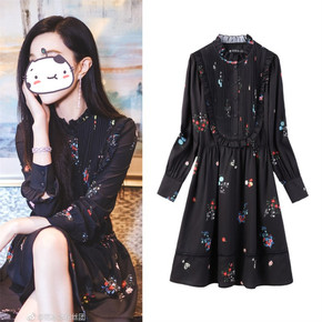2022女装新款秋装连衣裙明星范冰冰同款衣服显瘦碎花时尚百褶裙子