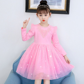 女童连衣裙秋冬新款2022小女孩子爱莎公主裙长袖甜美红色亮片纱裙