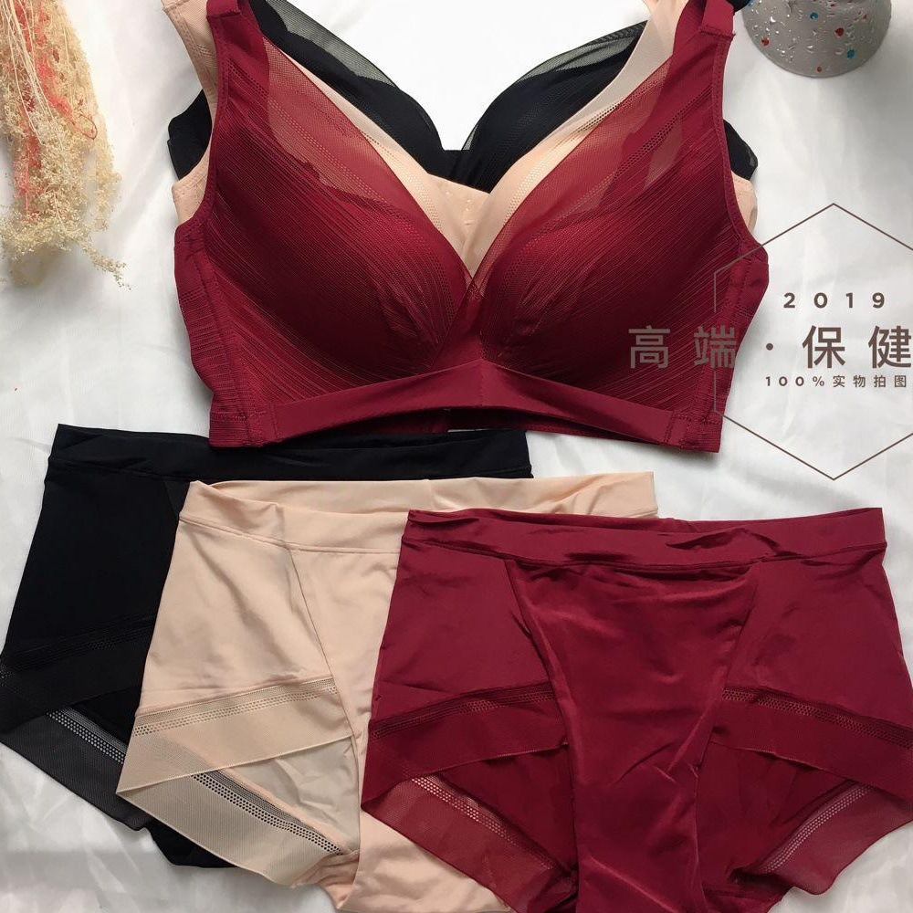 高端无钢圈无痕内衣 条纹网纱聚拢收副乳外扩调整云朵棉文胸套装