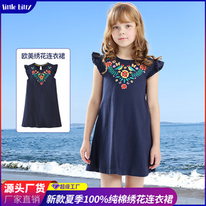 2022欧美夏季新款连衣裙儿童时尚女童潮流绣花纯棉裙跨境批发童装