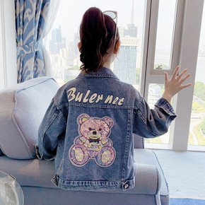 女童小熊亮片牛仔外套2022春秋韩版牛仔服夹克童装一件代发童外套
