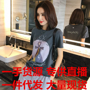 夏季短袖t恤女打底衫韩版宽松字母印花上衣ins潮女装一手货源抖音