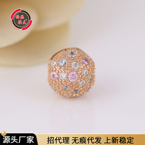 梵潘多拉帝 纯银珠子 S925 DIY串珠 密镶粉色星空手链固定夹