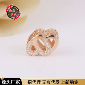 梵潘多拉帝 纯银珠子 S925 电镀玫金 缠绕的爱双爱心手链串珠