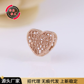 梵潘多拉帝纯银珠子S925玫瑰金浪漫镂空爱心手链串珠小配件女diy