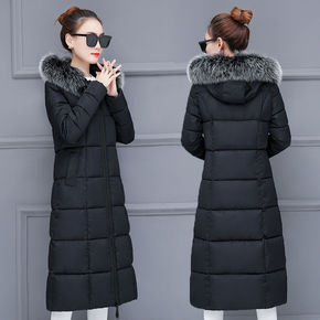 2021冬季新款女士棉衣韩版加长款加厚大毛领过膝大码修身羽绒棉服