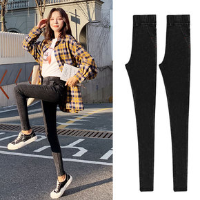 打底裤女外穿新款春秋季小脚紧身高腰显瘦九分加绒雪花色魔术裤