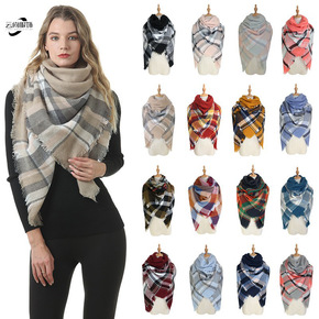 跨境新款亚马逊方巾围巾披肩速卖通欧美格子仿羊绒女士加大长巾
