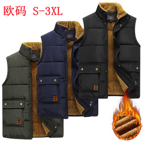 欧码ebay背心男士青年wish秋冬加绒羽绒棉马甲坎肩亚马逊速卖通厂