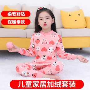 秋冬中领款加绒加厚男女童打底睡衣童装儿童保暖内衣套装一件代发