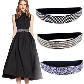 韩版时尚bling手工水钻镶嵌松紧弹力腰封女 裙子大衣点缀宽腰带女