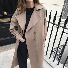 SEAE北欧极简TOT双排扣过膝中长款风衣女外套赫本风黑色大衣