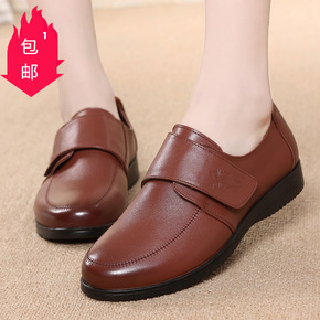 妈妈鞋春秋防滑平底真皮中年女鞋牛皮鞋中老年加绒棉鞋冬单鞋女