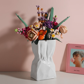景德镇白色陶瓷花瓶艺术摆件客厅插花装饰 积木花花店花瓶批发