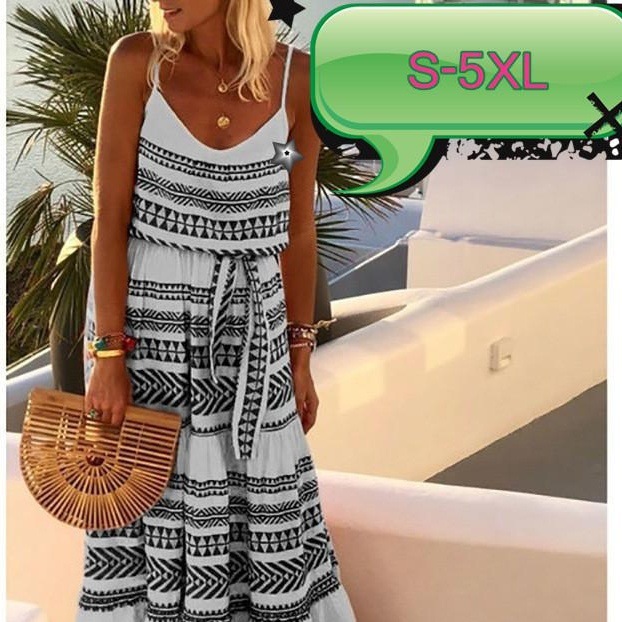 2021新款wish亚马逊大码女装波西米亚风深V领印花吊带沙滩连衣裙