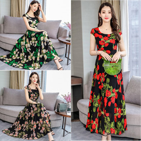 2019新款波西米亚长裙印花连衣裙泰国巴厘岛海边度假沙滩长裙