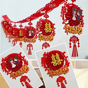 婚房布置喜字拉花装饰场景布置喜庆婚礼结婚用品客厅挂饰挂件批发