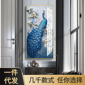 现代简约玄关装饰画壁画美式油画客厅欧式走廊挂画晶瓷过道画孔雀
