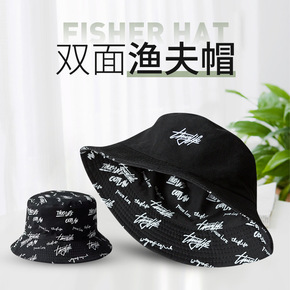 帽子女刺绣双面渔夫帽韩版太阳帽女遮阳帽百搭帽子男批发防晒盆帽