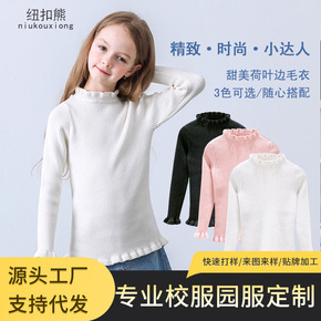 女童2022春季新款棉线针织衫女打底儿童毛衣童韩版荷叶可爱木耳边