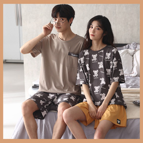 情侣睡衣夏季短袖纯棉圆领大码卡通睡衣女夏棉莱卡男式家居服批发