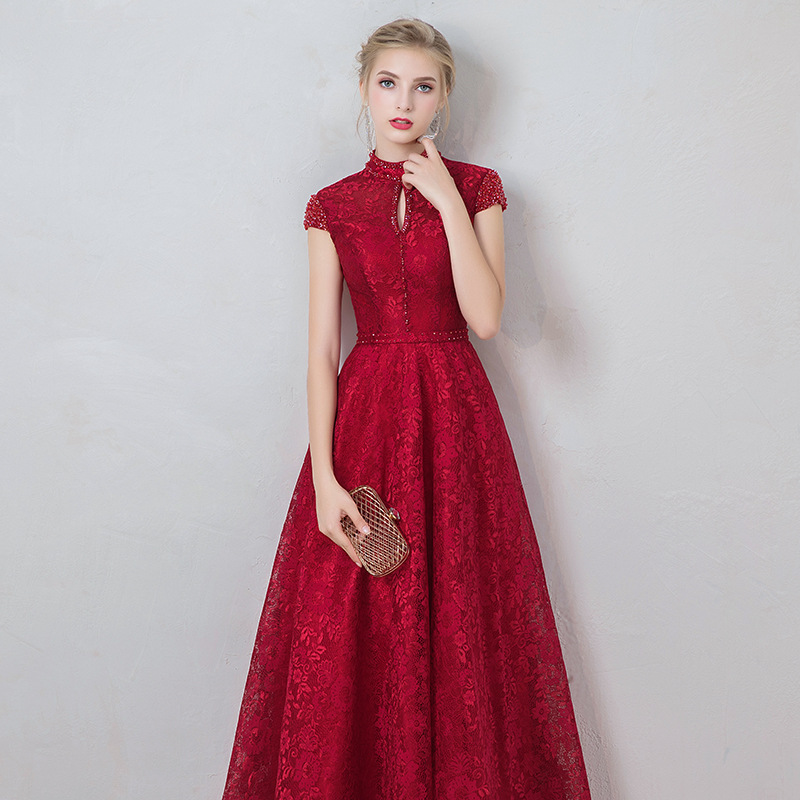 酒红色敬酒服2022新款新娘结婚长款订婚回门服连衣裙晚礼服洋装女