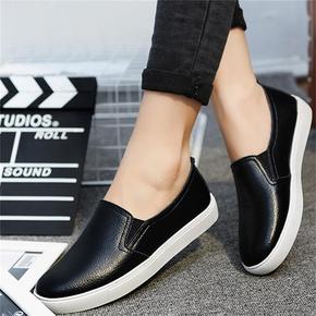 秋冬小白鞋休闲鞋板鞋一脚蹬平底驾车鞋加绒棉鞋牛皮女鞋乐福鞋女