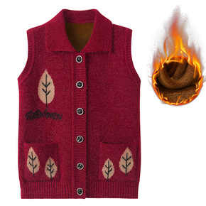 中老年马甲女春秋奶奶针织开衫老人马夹坎肩冬加绒妈妈装毛衣背心