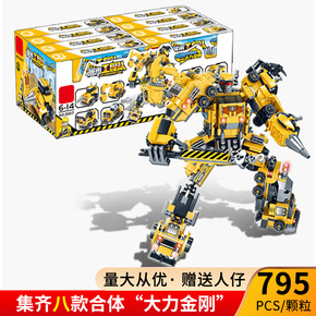 兼容樂高积木8合1变形城市金刚工程队人仔儿童小颗粒拼装玩具抖音