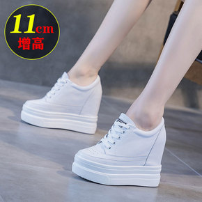 2022夏季鞋子透气内增高女鞋11cm镂空小皮鞋厚底休闲鞋小黑鞋女