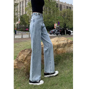 宽松牛仔裤女阔腿直筒2020新款高腰显瘦百搭垂感小个子泫雅拖地裤