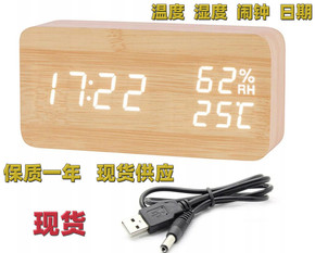 LED木头温度湿度钟 长方形数字木头钟 led木质时钟电子闹钟温度计