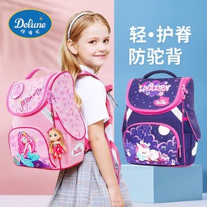 Delune卡通儿童书包 一二三年级男女童护脊减负小学生双肩包批发