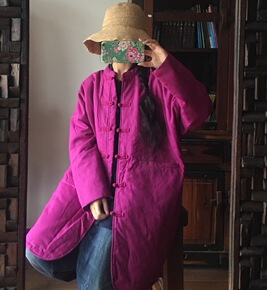 2019落古泥宽松文艺对襟中长薄棉衣1461