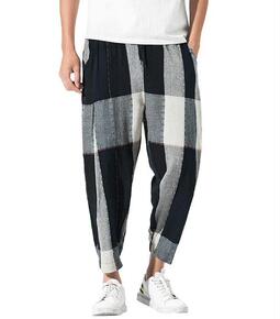 2020亚马逊秋冬新款欧美格子印花男士束脚裤运动宽松休闲长裤K934