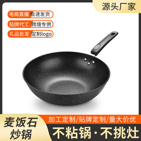 麦饭石加厚平底炒锅不粘锅平底少油烟电磁炉通用礼品套装炒菜锅