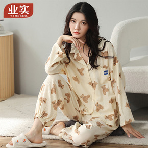 业实睡衣女长袖春秋款棉质冬季卡通小熊可爱风家居服跨境直播代发