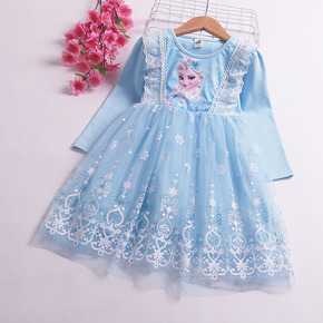 2021秋款儿童艾莎公主裙连衣裙万圣节圣诞节女童长袖网纱爱莎裙子