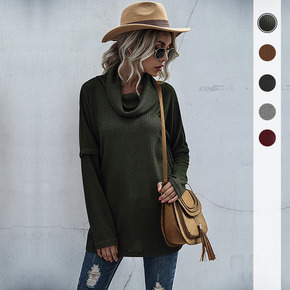 2021秋季亚马逊独立站跨境欧美大码堆堆领打底针织毛衣女长袖内搭